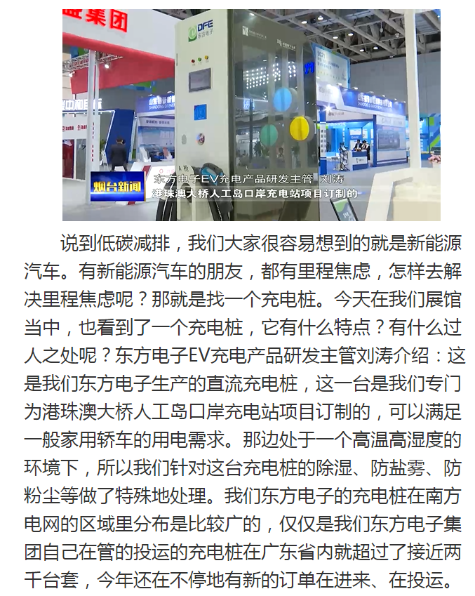 烟台新闻:青海景鸿酒店管理有限公司新一代智能充电桩参展2021双碳及能源装备展会